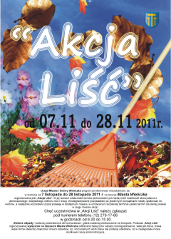 Uprzejmie informujemy, iż w dniach 7 -28 listopada 2011 r. na terenie Miasta Wieliczka organizowana jest „Akcja Liść”. W jej ramach właściciele domów jednorodzinnych będą mieli możliwość skorzystania z jednorazowego, bezpłatnego...