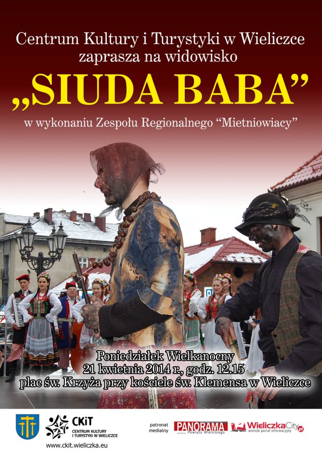 W Poniedziałek Wielkanocny o 12.15 zapraszamy na plac św. Krzyża przy kościele św. Klemensa w Wieliczce na widowisko SIUDA BABA w wykonaniu Zespołu Regionalnego MIETNIOWIACY.