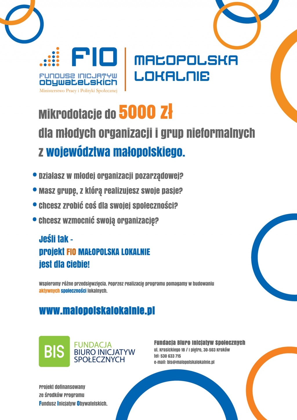 FIO Małopolska Lokalnie dofinansowanego ze środków Programu Fundusz Inicjatyw Obywatelskich.