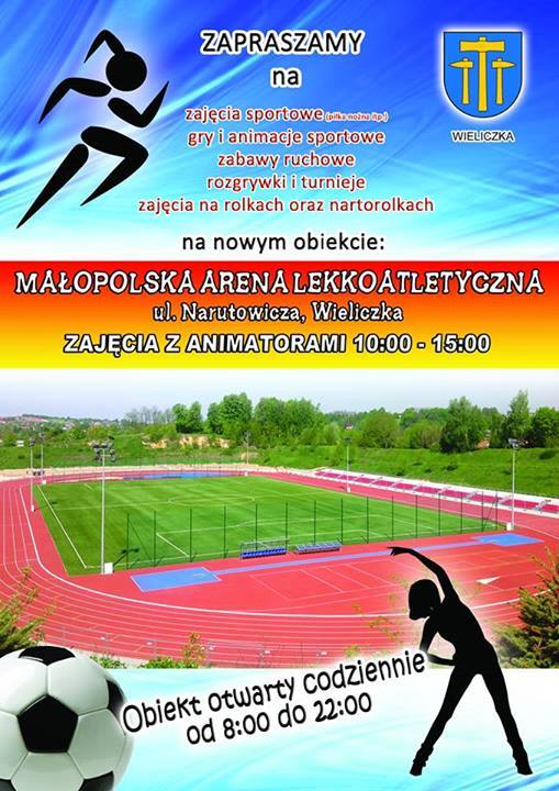 Małopolska Arena Lekkoatletyczna w Wieliczce zaprasza na zajęcia z animatorami od poniedziałku do piątku w godzinach 10.00-15.00.