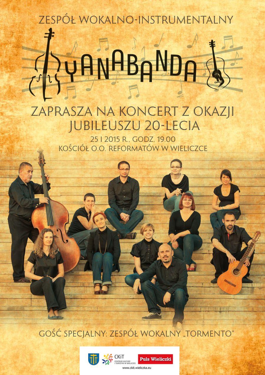 Serdecznie zapraszamy na pierwszy z czterech jubileuszowych koncertów w ramach obchodów 20-lecia działalności muzycznej zespołu YANABANDA, działającego pod patronatem Centrum Kultury i Turystyki w Wieliczce.