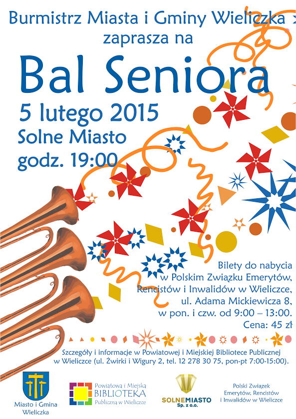 Już po raz drugi Burmistrz Miasta i Gminy Wieliczka zaprasza seniorów na Bal Seniora, który odbędzie się 5 lutego (czwartek) w Centrum Edukacyjno-Rekreacyjnym Solne Miasto w Wieliczce.