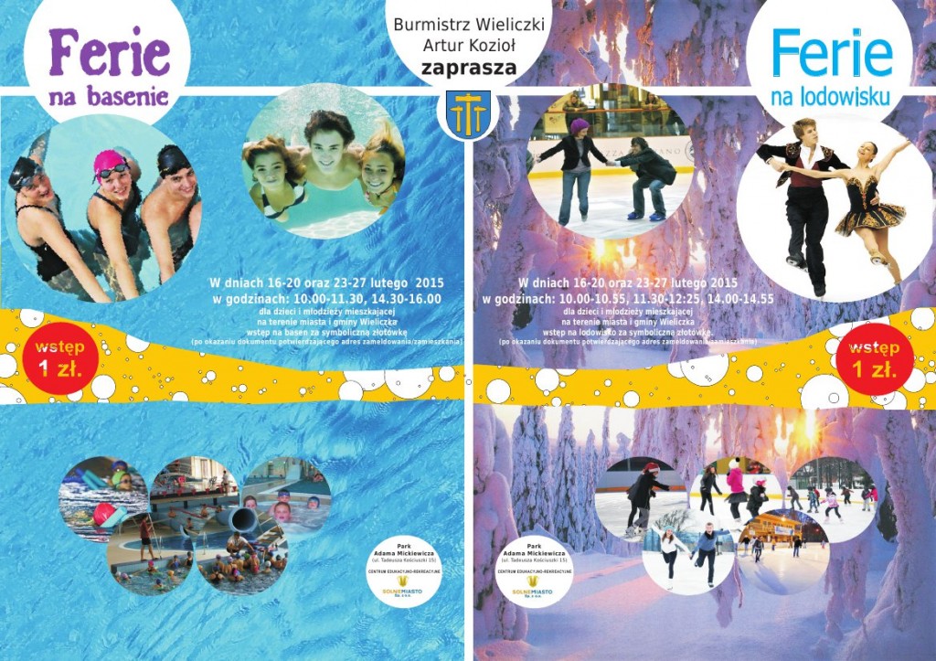 Burmistrz Wieliczki Artur Kozioł zaprasza dzieci i młodzież z terenu naszej gminy na ferie na basenie oraz ferie na lodowisku za symboliczną złotówkę !