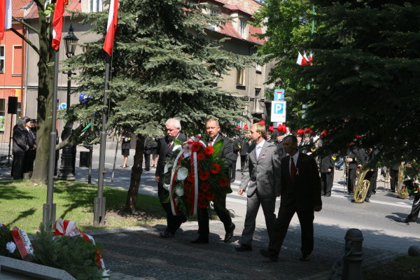 Po odczytaniu listu, prowadzący uroczystości sekretarz UMiG Wieliczka Adam Marek Panuś zaprosił poszczególne delegacje do składania wieńców i wiązanek kwiatów. W imieniu Rady Miejskiej, wieniec złożyli: przewodniczący Rady Zbigniew Zarębski wraz z wiceprzewodniczącymi: Alojzym Brożkiem, Tadeuszem Lurańcem, Janem Murzynem. W imieniu mieszkańców miasta i gminy, wieniec złożyli: burmistrz Wieliczki Artur Kozioł wraz z zastępcą Henrykiem Gaworem i komendantem Straży Miejskiej Kazimierzem Hankusem.
