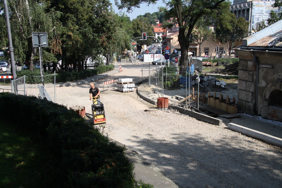 Dotychczas roboty budowlane obejmowały Plac Kościuszki oraz dolny odcinek ul. Sikorskiego w której wykonano także fragment kanalizacji na wysokości Placu Św. Krzyża z zachowaniem ruchu pojazdów mechanicznych w kierunku Górnego Rynku.