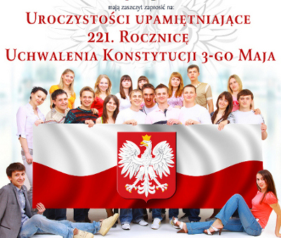 Burmistrz Miasta i Gminy Wieliczka oraz Starosta Wielicki zapraszają na : UROCZYSTOŚCI UPAMIĘTNIAJĄCE 221. ROCZNICĘ UCHWALENIA KONSTYTUCJI 3 – GO MAJA.