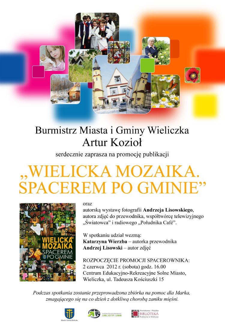 Burmistrz Miasta i Gminy Wieliczka Artur Kozioł serdecznie zaprasza na promocję publikacji „WIELICKA MOZAIKA. SPACEREM PO GMINIE” oraz autorską wystawę fotografii Andrzeja Lisowskiego, autora zdjęć do przewodnika, współtwórcę telewizyjnego „Światowca” i radiowego „Południka Cafe”.