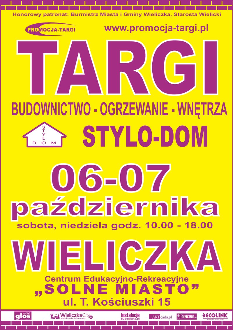W dniach 6-7.10.2012r. na terenie Centrum Edukacyjno-Rekreacyjnego "Solne Miasto" przy ul. Tadeusza Kościuszki 15 w Wieliczce odbędą się targi "Stylo-Dom". Honorowy Patronat nad targami objęli: Burmistrz Miasta i Gminy Wieliczka oraz Starosta Wielicki.