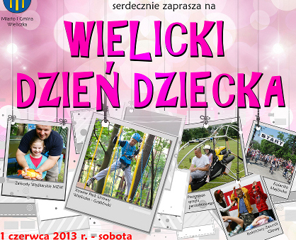 Burmistrz Miasta i Gminy Wieliczka serdecznie zaprasza na WIELICKI DZIEŃ DZIECKA, który odbędzie się 1 czerwca 2013 r (sobota).